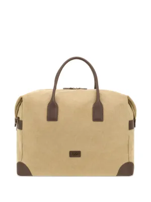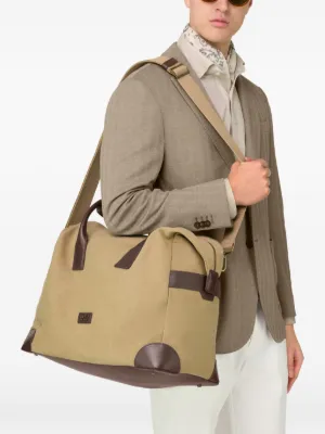 New Season Boggi Milano zipped travel holdall Imported Highlights beige top handle detachable shoulder strap zip fastening leather trims corner patches Composition Outer: Cotton 59%, Calf Leather 30%, Polyurethane 11% Product IDs FARFETCH ID: 33818615 Brand style ID: BO26P082101