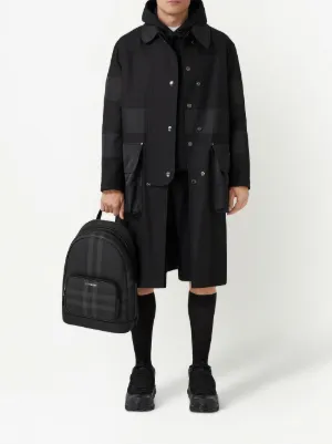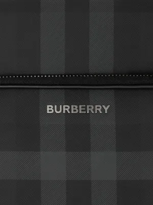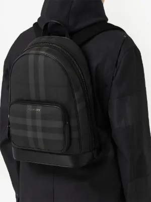 Burberry check small backpack Imported Highlights charcoal grey cotton blend Vintage Check pattern logo print to the front front patch pocket all-around zip fastening adjustable shoulder straps Composition Outer: Thermoplastic Polyurethane (TPU) 75%, Cotton 25% Lining: Polyester 100% Product IDs FARFETCH ID: 19316811 Brand style ID: 8065630