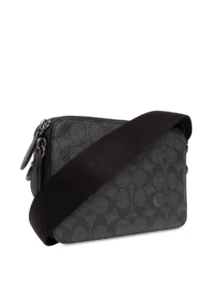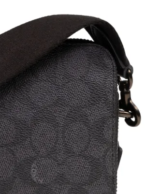 Coach zipped leather messenger bag Imported Highlights charcoal grey canvas/calf leather single shoulder strap double zip fastening internal card slots Composition Outer: Canvas 100%, Calf Leather 100% Lining: Fabric 100% Product IDs FARFETCH ID: 23897322 Brand style ID: CR783