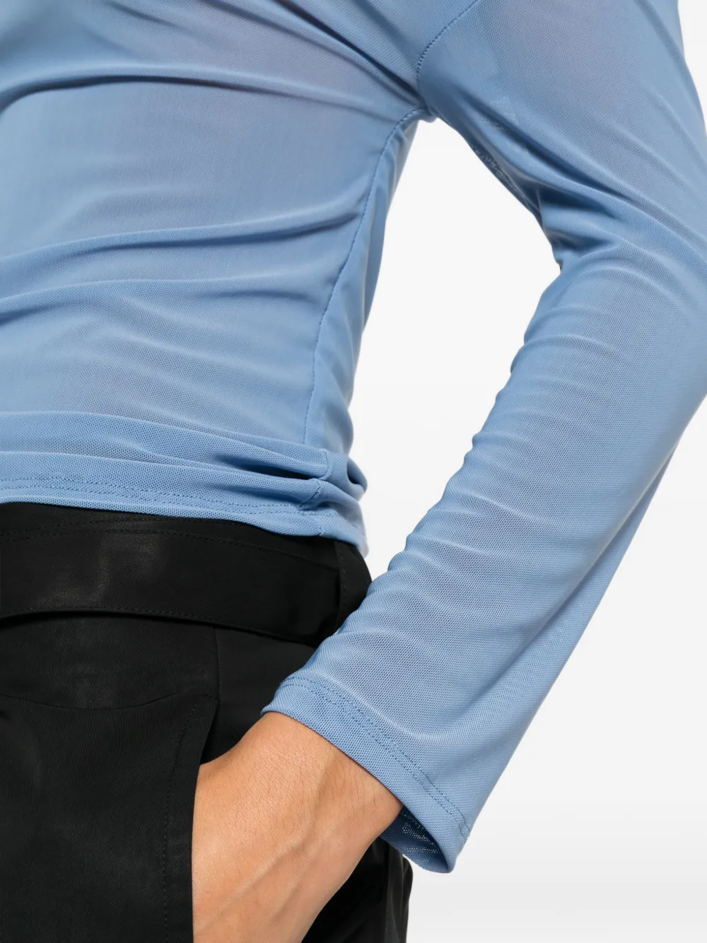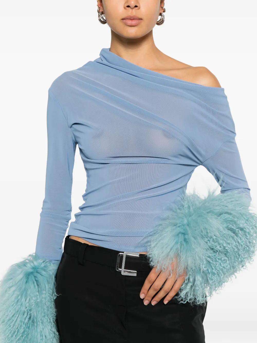 New Season Cowboys of Habit Amazon draped top Made in United Kingdom Highlights blue draped detailing fur cuffs long sleeves asymmetric neck Composition Nylon 85%, Spandex/Elastane 15% Washing instructions Dry Clean Only Wearing The model is 5 ft 9 in. Product IDs FARFETCH ID: 32499228 Brand style ID: COH30012