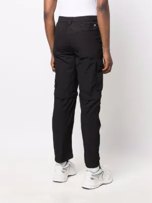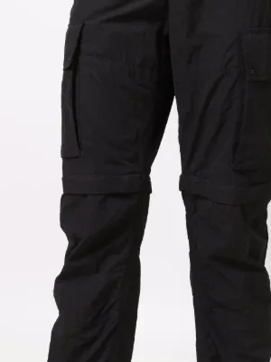 black two side zip-fastening pockets two rear zip-fastening pockets multiple cargo pockets belt loops mid-rise straight leg detachable legs zip fly fastening