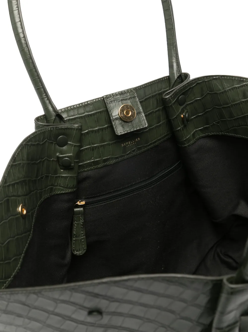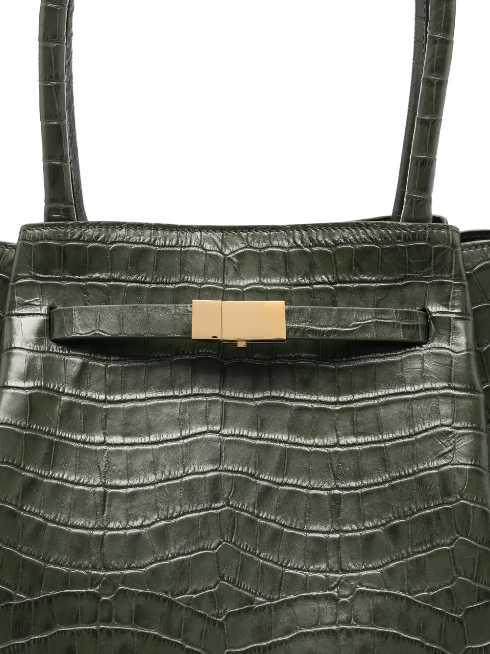 New Season DeMellier The New York green leather tote bag Imported Highlights green crocodile-embossed leather top handles gold-tone hardware magnetic fastening This piece comes complete with a protective dust bag. Composition Outer: Calf Leather 100% Lining: Cotton 100% Wearing The model is 5 ft 9 in wearing size OS Product IDs FARFETCH ID: 32363008 Brand style ID: D90THENEWYORKMOSSGREENCROC