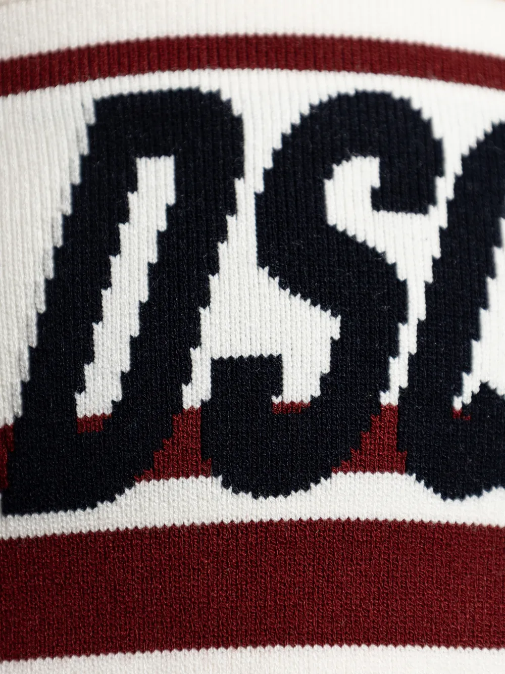 New Season DSQUARED2 striped knitted top Made in Italy Highlights white stripes knitted construction lettering Composition Viscose 68%, Polyester 29%, Polyamide 2%, Polyurethane 1% Washing instructions Read Manufacturer Guidelines Product IDs FARFETCH ID: 33147032 Brand style ID: S72HA1267D13220