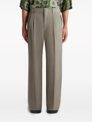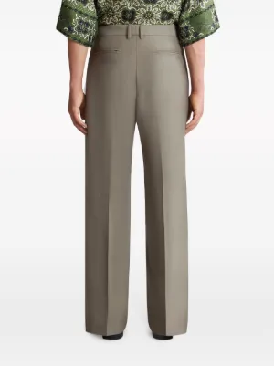 Runway ETRO wool tailored trousers Made in Italy Highlights taupe stretch-wool pleat detailing pressed crease mid-rise belt loops concealed front fastening two side slash pockets two rear welt pockets straight leg Composition Wool 95%, Elastane 5% Washing instructions Read Manufacturer Guidelines Product IDs FARFETCH ID: 22888057 Brand style ID: MREA001199TU2F6