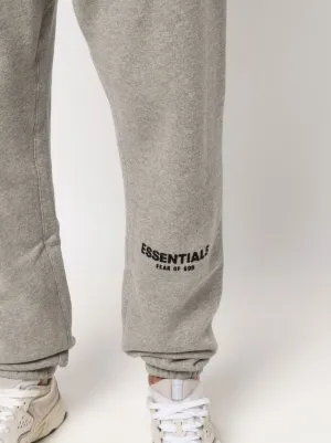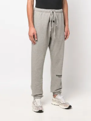 FEAR OF GOD ESSENTIALS logo-print track pants grey cotton blend jersey knit logo print at the leg elasticated drawstring waistband elasticated ankles Imported Composition Cotton 80%, Polyester 20% Washing instructions Hand Wash Wearing The model is 6 ft 1 in wearing size M Product IDs FARFETCH ID: 18504634 Brand style ID: 130BT212033F