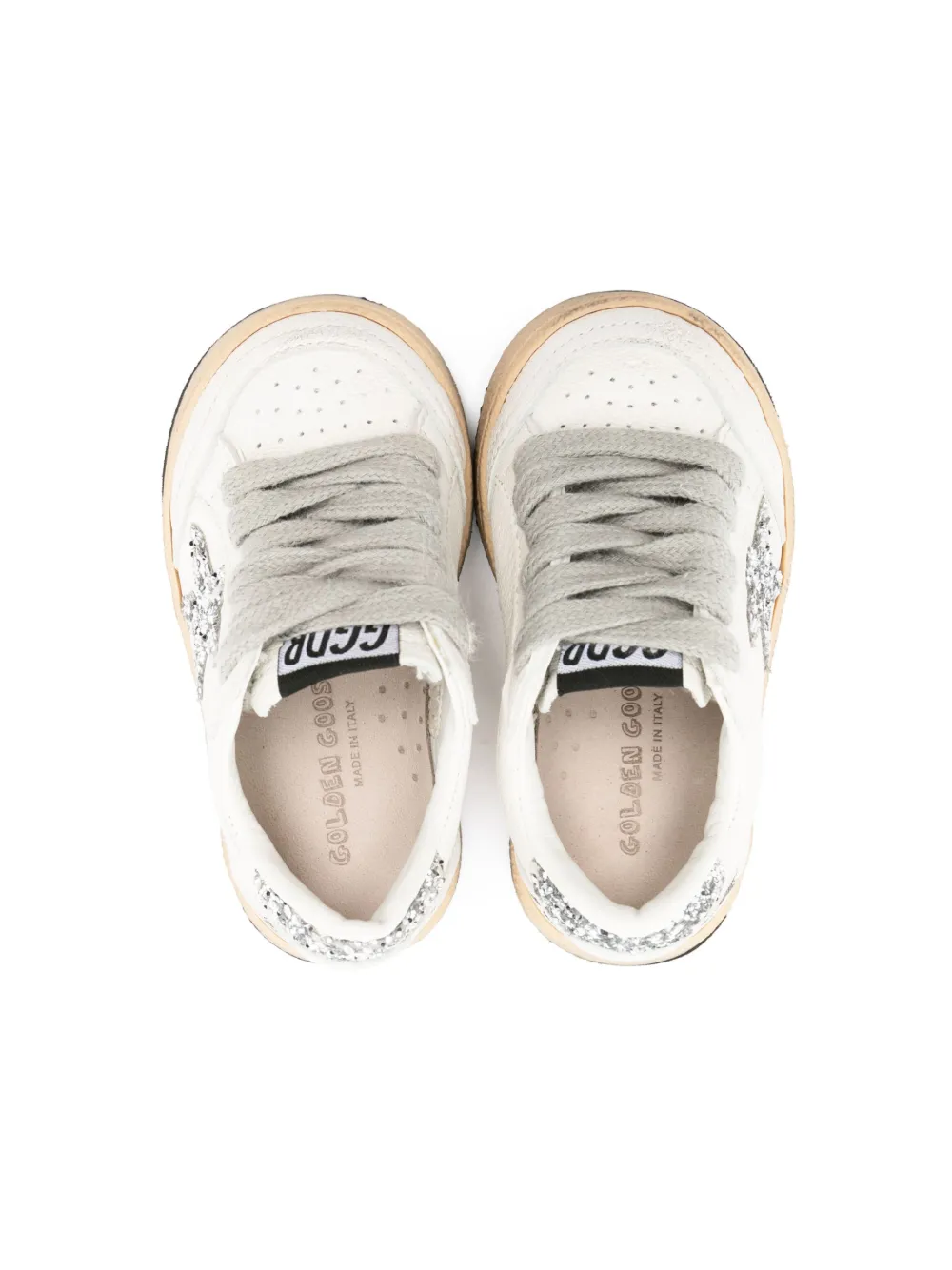 Golden Goose Kids Ball Star leather sneakers Taking inspiration from 80's college styles, Golden Goose's Ball Star sneakers feature a casual, low-top silhouette. Here the comfortable pair are delivered in a grey and white colourway whilst boasting the brand's signature star patch on the sidewalls. Made in Italy Highlights ivory white calf leather signature star patch to the sides sequin embellishment round toe logo patch at the tongue front lace-up fastening perforated detailing contrasting branded heel counter flat rubber sole Composition Outer: Calf Leather 100% Sole: Rubber 100% Lining: Fabric 100%, Rubber 100% Product IDs FARFETCH ID: 20810413 Brand style ID: GYF00439F004826