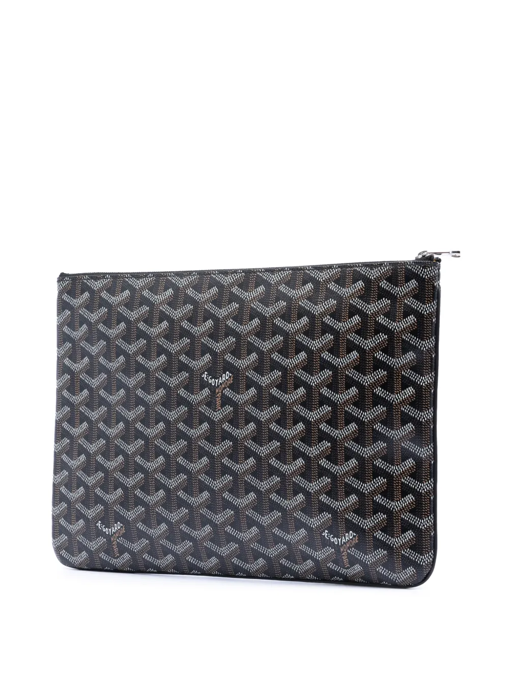 Pre-Owned Goyard Pre-Owned 2017 Goyardine Senat MM clutch bag Made in France Highlights coated canvas body top zip closure interior slip pocket black Serial Number: SAR120170 This item has no inclusions. Condition: EXCELLENT. This previously owned item is in near-perfect condition with no signs of damage or use. Please refer to the photos on this product page for a detailed view of the item, including any damages declared. Condition Excellent Learn More About Condition Rating Composition Outer: Fabric 100% Product IDs FARFETCH ID: 34054108 Brand style ID: HKFRB2FLYF9E5EY0