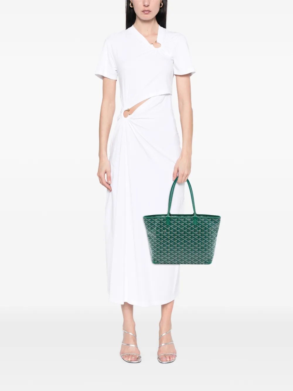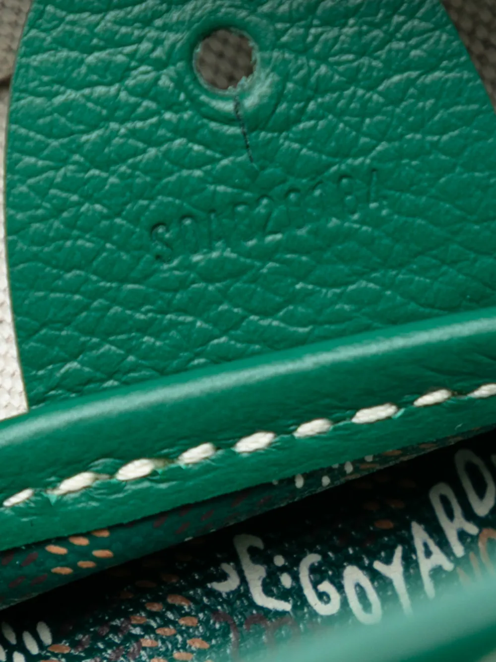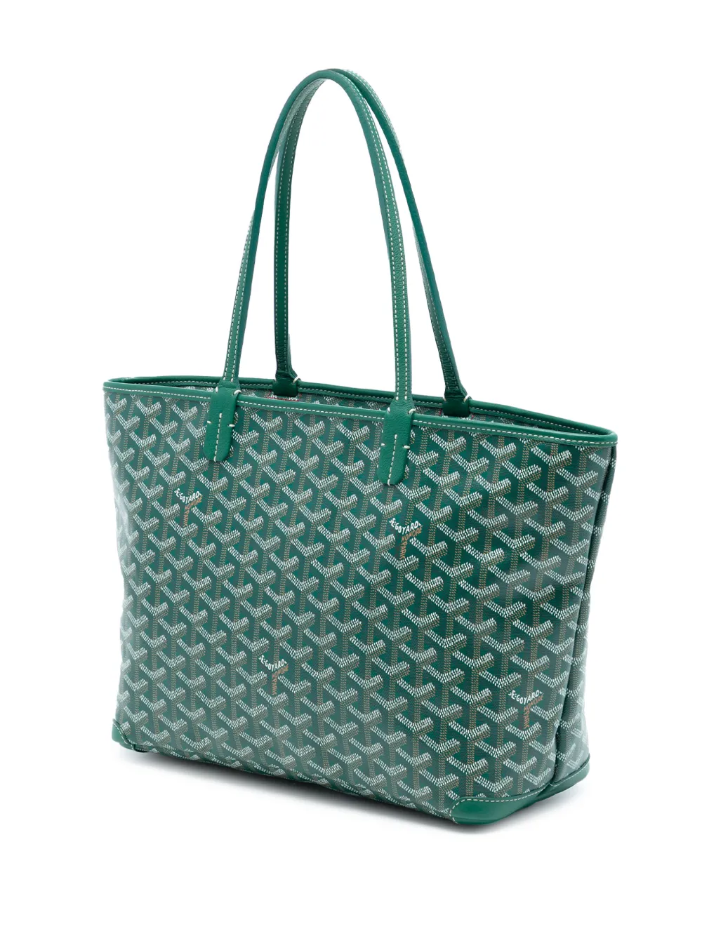 Pre-Owned Goyard Pre-Owned 2018 Goyardine Artois PM tote bag Made in France Highlights coated canvas body with leather trim flat leather straps top zip closure interior slip pocket green Serial Number: SOA020184 This item has no inclusions. Condition: EXCELLENT. This previously owned item is in near-perfect condition with no signs of damage or use. Please refer to the photos on this product page for a detailed view of the item, including any damages declared. Condition Excellent Learn More About Condition Rating Composition Outer: Fabric 100% Product IDs FARFETCH ID: 34052949 Brand style ID: 1B4UUYWXF983LZEY