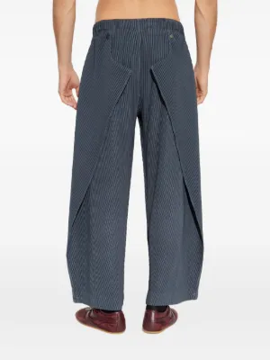 Homme Plissé Issey Miyake Angular Stone trousers Imported Highlights grey pleated construction elasticated waistband side pockets button details Composition Polyester 100% Washing instructions Read Manufacturer Guidelines Product IDs FARFETCH ID: 32181904 Brand style ID: HP58JF307