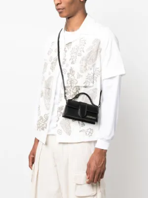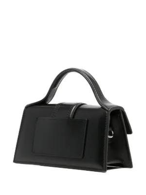 Jacquemus Le Bambino leather tote bag Crafted in Italy from smooth calf leather, Jacquemus' Le Bambino tote bag is a cult classic thanks to its miniature shape, structured trapeze silhouette and silver-tone logo lettering accent. Made in Italy Highlights black leather silver-tone logo lettering silver-tone hardware internal logo patch foldover top with magnetic fastening adjustable detachable shoulder strap single top handle main compartment Composition Outer: Leather 100% Wearing The model is 6 ft 2 in wearing size OS Product IDs FARFETCH ID: 19972278 Brand style ID: 213BA0063000