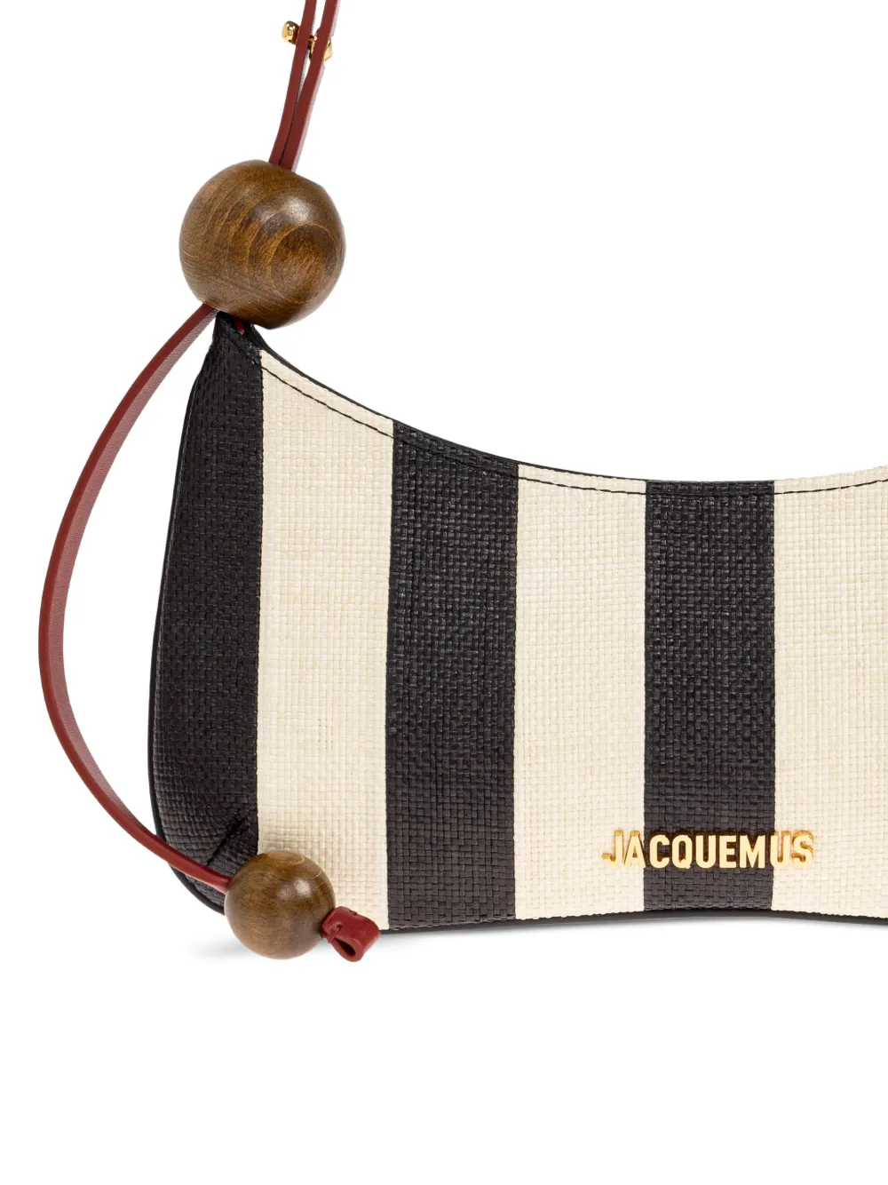 New Season Jacquemus Le Bisou Perle shoulder bag Made in Italy Highlights black and ivory striped pattern top zip fastening internal slip-pocket wooden-bead embellishment Composition Outer: Polyamide 100% Product IDs FARFETCH ID: 33239694 Brand style ID: BAW00057AE000761FY