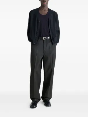 LEMAIRE patch-pocket trousers Imported Highlights grey button closure patch pockets metal rivets Composition Fabric 100% Washing instructions Read Manufacturer Guidelines Product IDs FARFETCH ID: 30583012 Brand style ID: PA1261LD1059