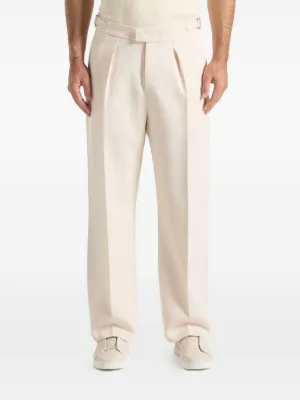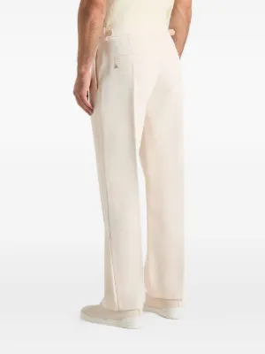 Manière De Voir Dorian twill pleated tailored trousers Imported Highlights cream front pleat detail side slip pockets waistband self-adjusters logo detail Composition Polyester 80%, Rayon 17%, Elastane 3% Washing instructions Read Manufacturer Guidelines Product IDs FARFETCH ID: 30919320 Brand style ID: MAN3095