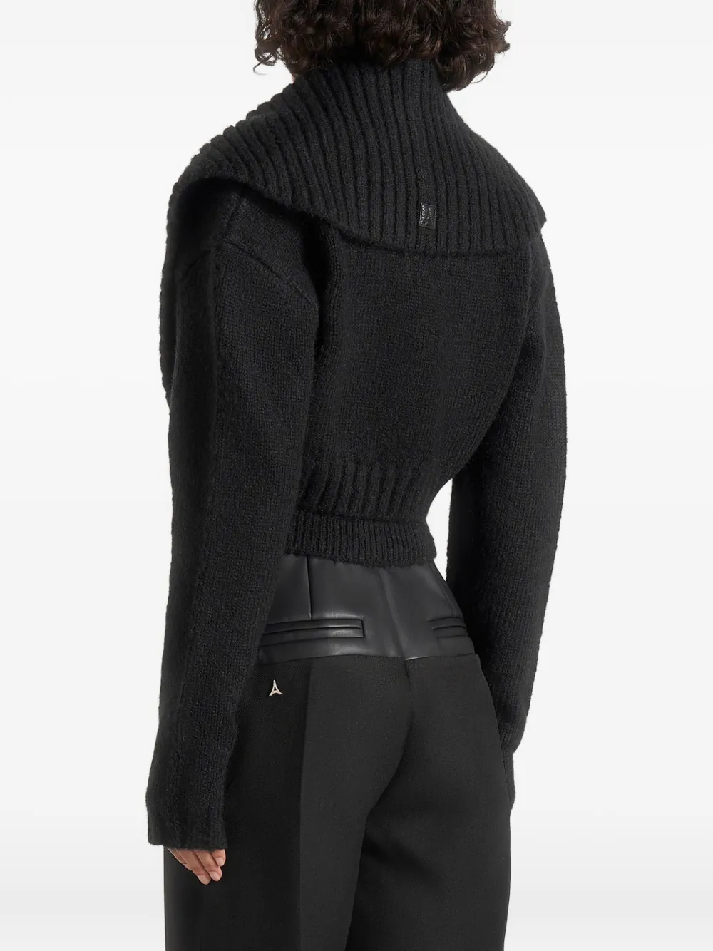 Manière De Voir Emya black knit-shrug cardigan set (set of two) Imported Highlights black knit construction bandeau top shawl overlay detachable elements tonal patch Composition Acrylic 51%, Polyester 19%, Nylon 19%, Wool 10%, Elastane 1% Washing instructions Read Manufacturer Guidelines Product IDs FARFETCH ID: 32280825 Brand style ID: WMN4335