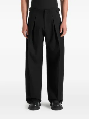 Manière De Voir Lior box-pleat wide-leg trousers Imported Highlights black pleated-details slash pockets straight hem Composition Polyester 57%, Wool 23%, Rayon 18%, Spandex/Elastane 2% Washing instructions Read Manufacturer Guidelines Product IDs FARFETCH ID: 31167531 Brand style ID: MAN3450