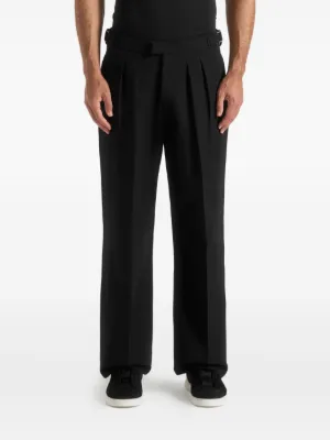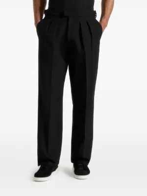 Manière De Voir Pierre pleated tailored trousers Imported Highlights black front pleats triangle welt back pocket side adjusters plaque on the back pocket Composition Polyester 57%, Wool 23%, Rayon 18%, Elastane 2% Washing instructions Read Manufacturer Guidelines Product IDs FARFETCH ID: 32606843 Brand style ID: MAN33333