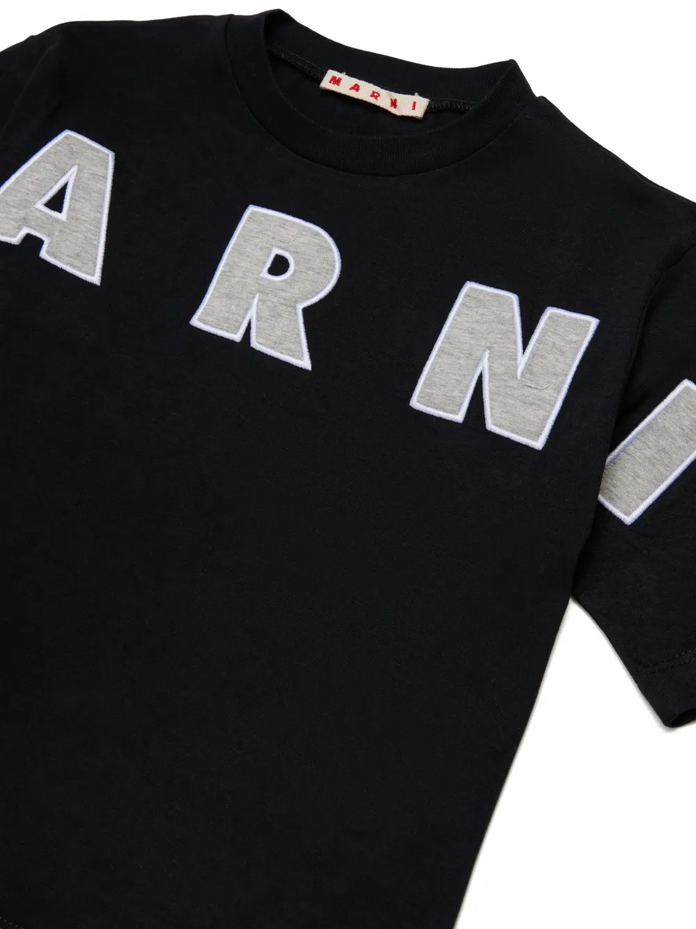 New Season Marni Kids short-sleeve T-shirt Imported Highlights black appliqué detailing short sleeves round neck Composition Cotton 100% Washing instructions Read Manufacturer Guidelines Product IDs FARFETCH ID: 32585733 Brand style ID: M01733M00RF
