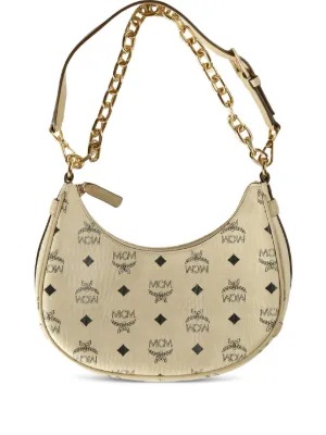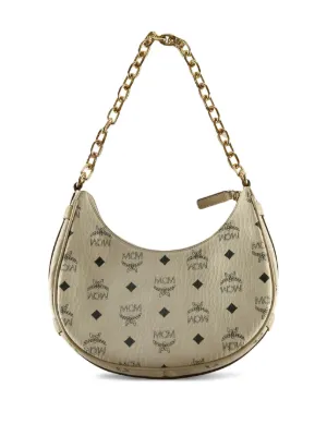 MCM small Aren logo-pattern shoulder bag Imported Highlights beige logo pattern chain detail zip fastening top handle gold-tone hardware Composition Outer: Canvas 100% Product IDs FARFETCH ID: 32353583 Brand style ID: MWHFATA02