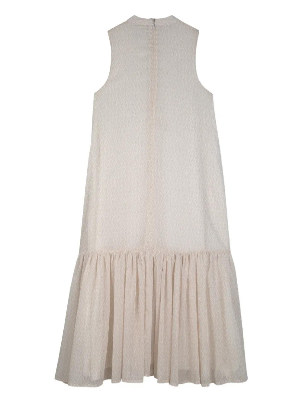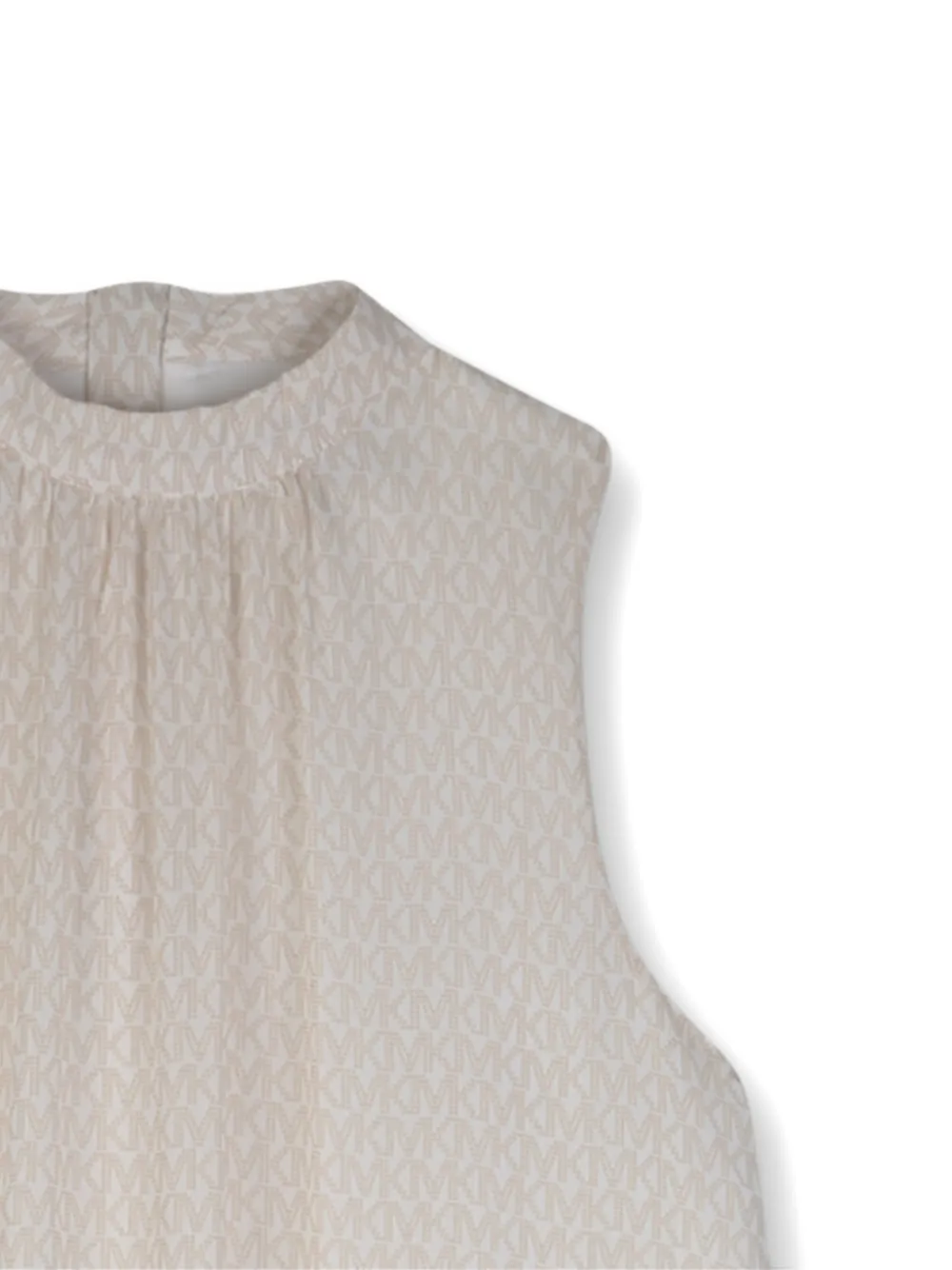 New Season Michael Kors Kids monogram-pattern ruffled dress Imported Highlights light beige monogram pattern gathered detail sleeveless rear zip fastening Composition Fabric 100% Washing instructions Machine Wash Product IDs FARFETCH ID: 32980969 Brand style ID: R30592