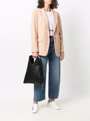 MM6 Maison Margiela small Classic Japanese tote bag Imported Highlights black calf leather grained texture triangle shape single top handle main compartment Composition Outer: Calf Leather 100%, Polyester 60%, Polyurethane 40% Lining: Ramie 100%, Polyester 100% Product IDs FARFETCH ID: 19860758 Brand style ID: S54WD0043P4313