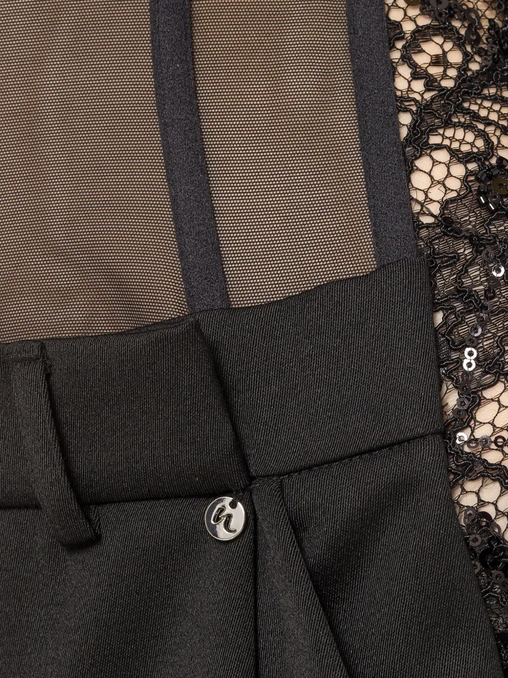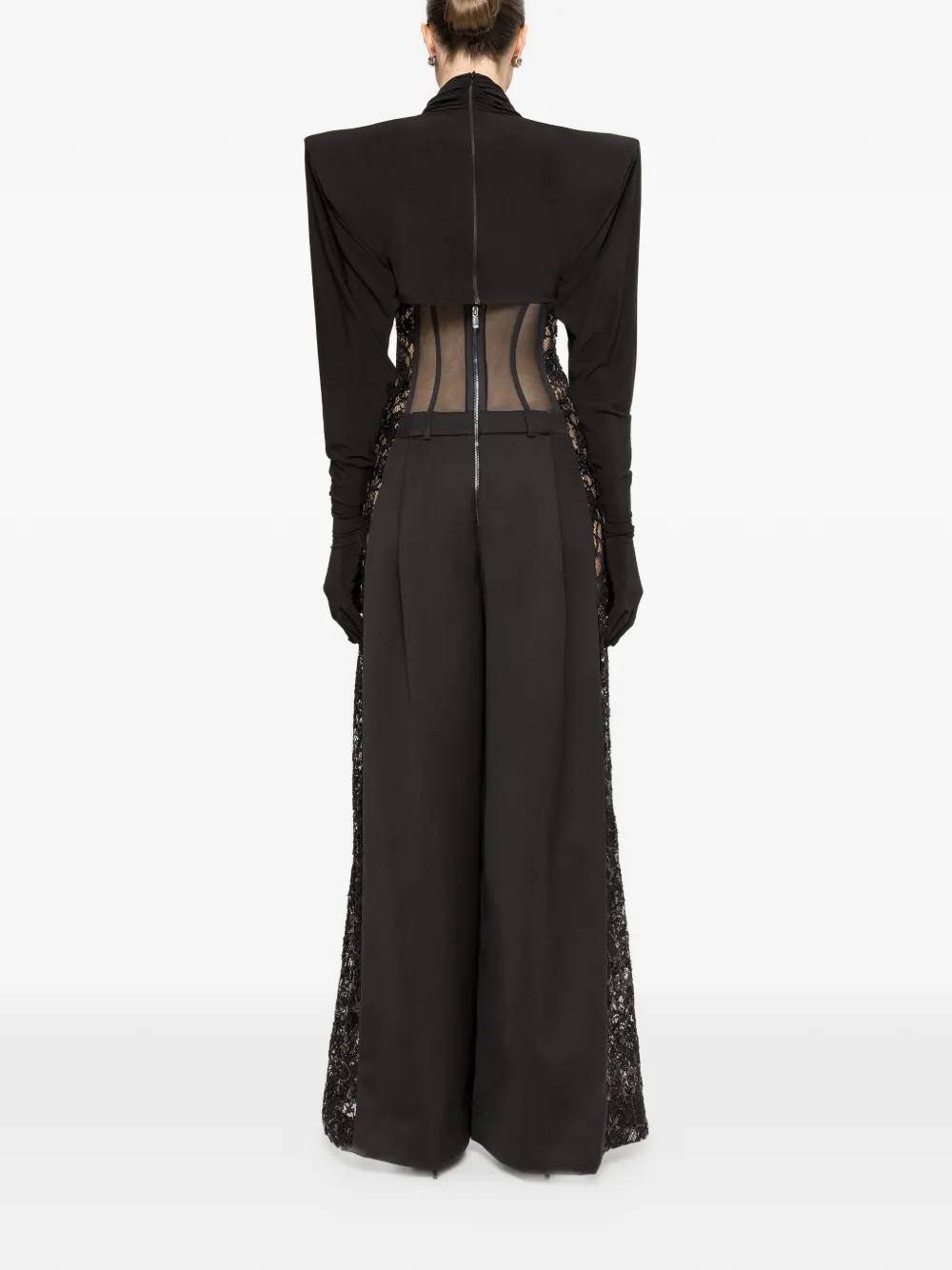 NISSA tulle lace trousers Imported Highlights black tulle corset lace panels wide leg Composition Fabric 100% Washing instructions Specialist Cleaning Product IDs FARFETCH ID: 33095348 Brand style ID: PS16348BLACK