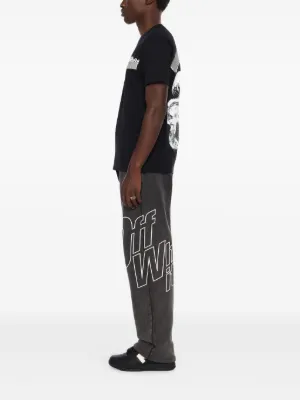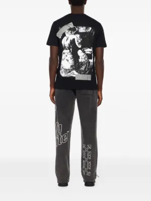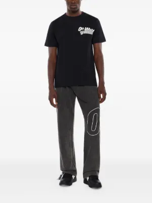 Off-White Outline Arrow track pants Imported Highlights black graphic logo print elasticated waistband drawstring fastening Arrows motif Composition Cotton 100% Washing instructions Read Manufacturer Guidelines Product IDs FARFETCH ID: 32283558 Brand style ID: OMCH05AF25FLE001