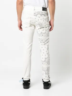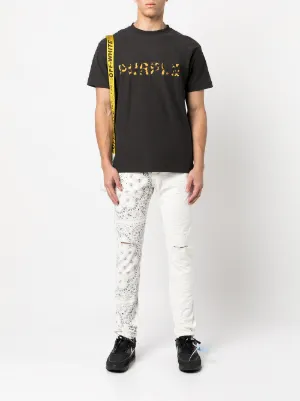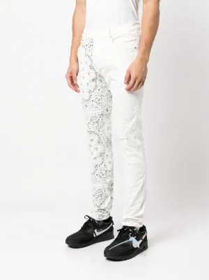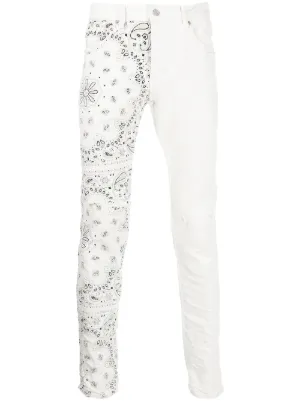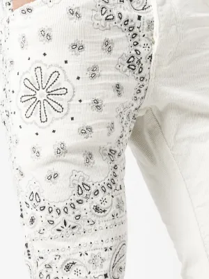 Purple Brand bandana-print skinny corduroy trousers white/black cotton corduroy logo patch to the rear bandana print skinny cut mid-rise concealed fly and button fastening belt loops Imported Composition Cotton 98%, Lycra 2% Wearing The model is 6 ft 2 in wearing size 32 Product IDs FARFETCH ID: 18412548 Brand style ID: P001CBPE222