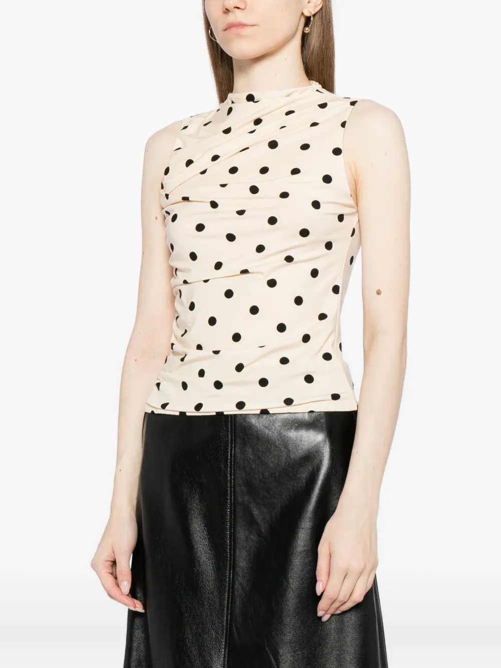Reformation Marlo knit top Imported Highlights beige polka dot print straight hem Composition TENCEL™ Lyocell (LENZING) 88%, Spandex/Elastane 12% Washing instructions Machine Wash Wearing The model is 5 ft 10 in wearing size S Product IDs FARFETCH ID: 32020425 Brand style ID: 1317114UAT