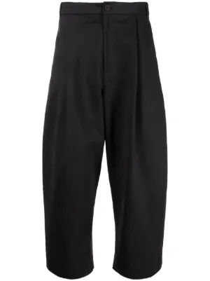 Yale wide-leg trousers from STUDIO NICHOLSON featuring navy blue, cotton, belt loops, front button and zip fastening, slip pockets to the sides, two rear patch pockets and wide leg.