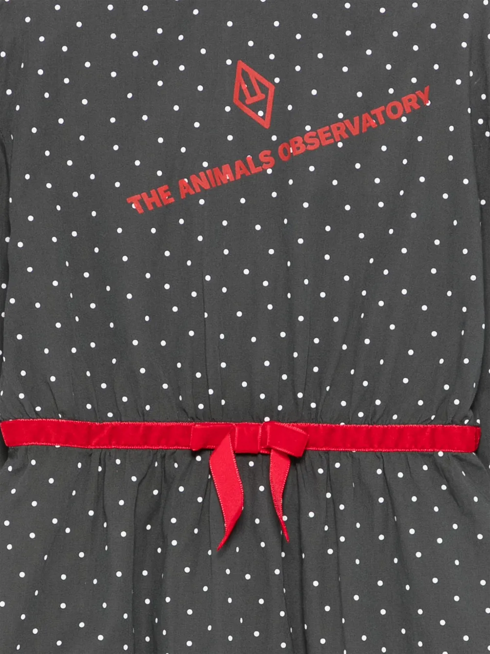 The Animals Observatory Tortoise polka-dot ruffled midi dress Imported Highlights dark grey polka-dot pattern red ribbon belt ruffled collar long sleeves rear button-fastening Composition Fabric 100% Washing instructions Hand Wash Product IDs FARFETCH ID: 30414369 Brand style ID: MF25053