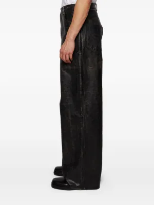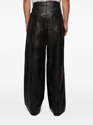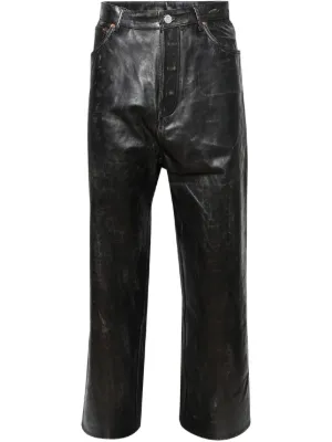 VETEMENTS leather trousers Imported Highlights black front button and zip fastening classic five pockets belt loops distressed effect Composition Leather 100% Washing instructions Specialist Cleaning Product IDs FARFETCH ID: 25655482 Brand style ID: UA66PA200X