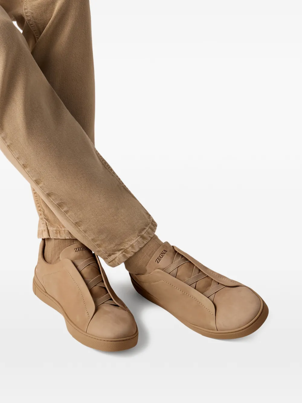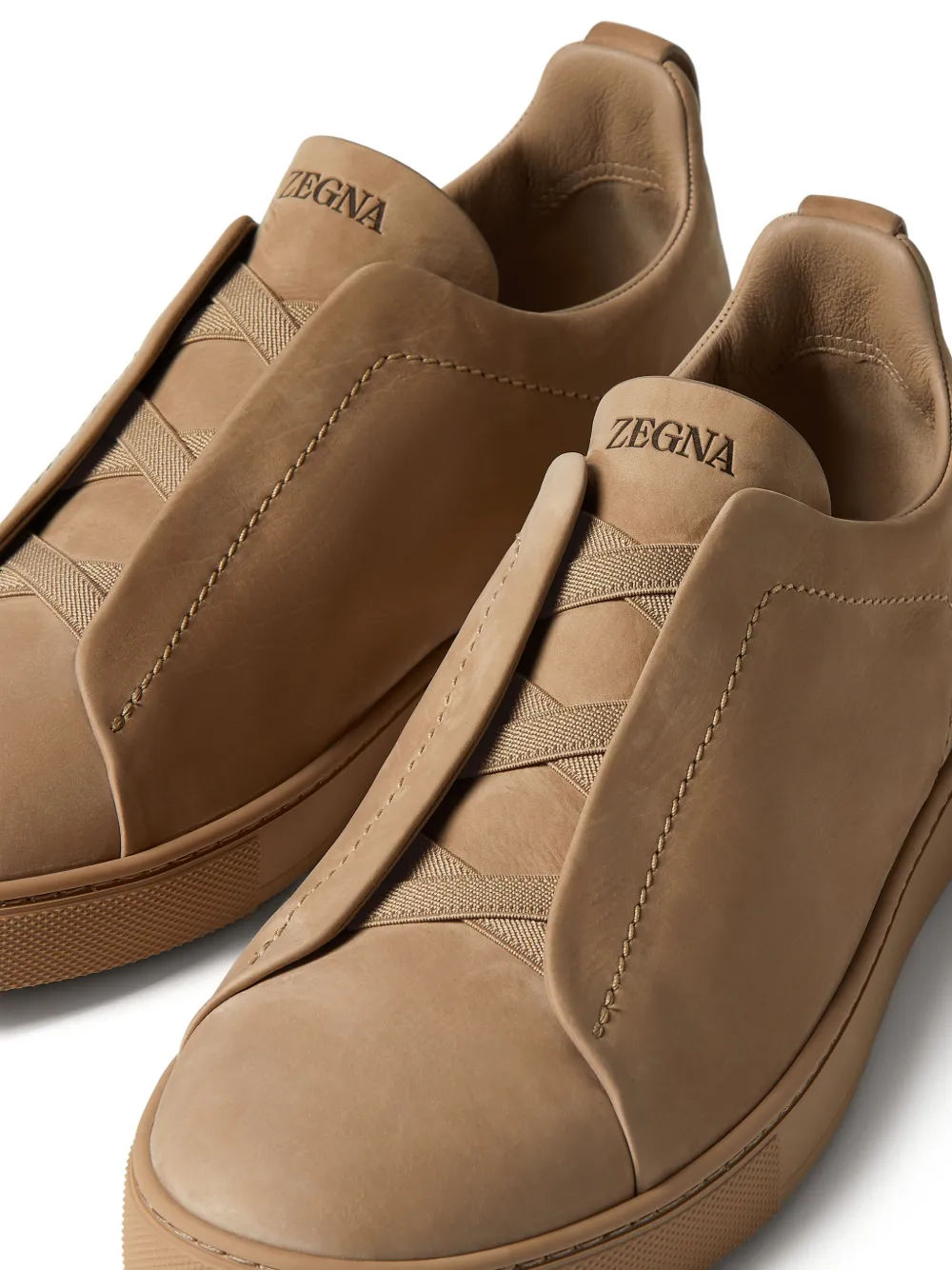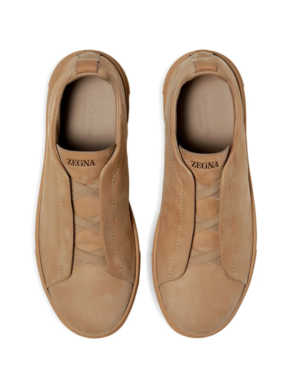 New Season Zegna Triple Stitch sneakers Made in Italy Highlights beige slip-on style flat rubber sole Composition Lining: Calf Leather 100% Outer: Nubuck Leather 100% Sole: Rubber 100% Product IDs FARFETCH ID: 33128290 Brand style ID: LHNBCS7964Z
